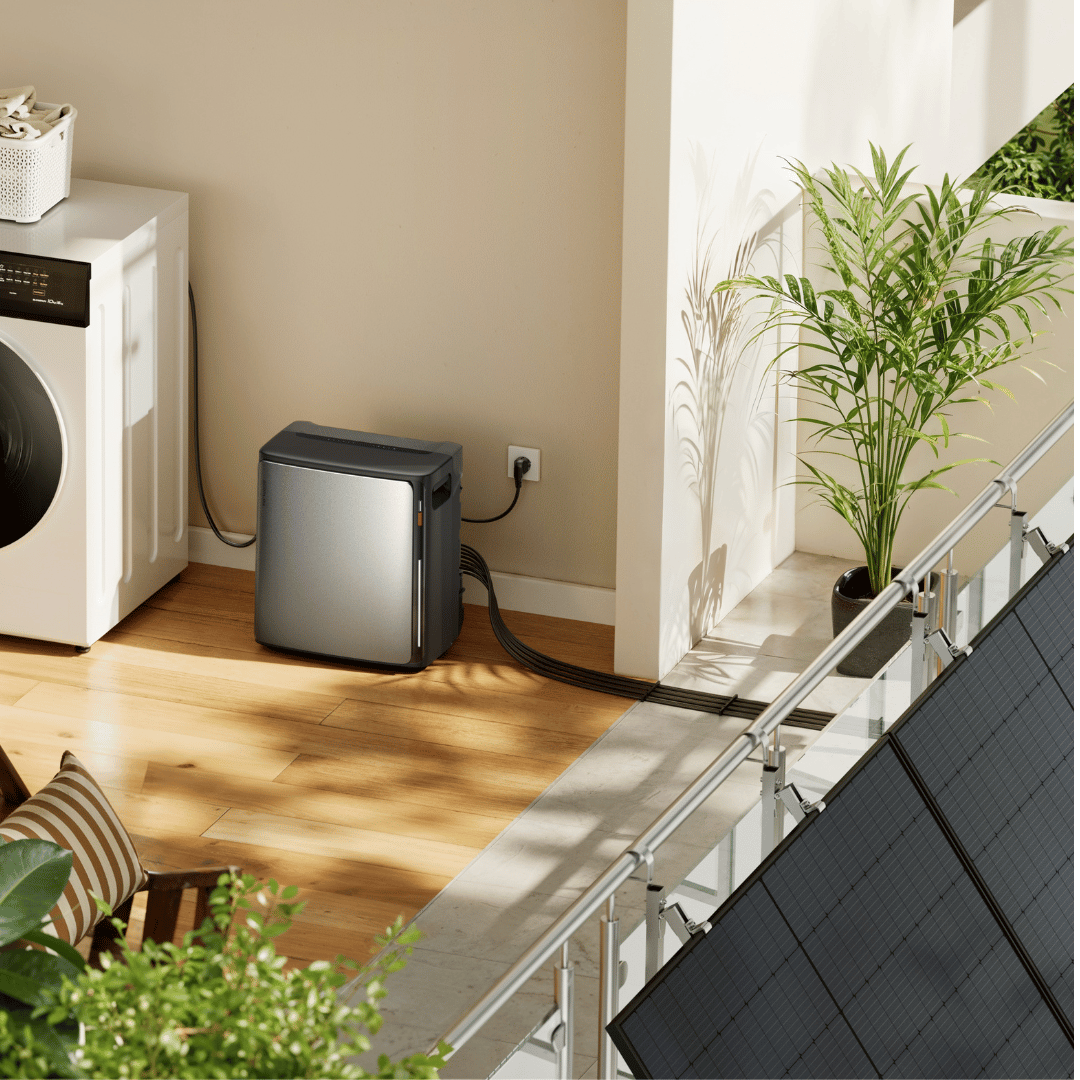 Das System besteht aus intelligenten, dezentralen Speichereinheiten. Wenn dein Balkonkraftwerk mehr als die benötigten 800 Watt liefert, leitet das System den überschüssigen Strom direkt an die angeschlossenen Speicherbatterien um. Diese kommunizieren über den Haushaltsstromkreis miteinander und können so auch energieintensive Geräte wie Waschmaschinen oder Trockner mit dem gespeicherten Solarstrom versorgen, anstatt teuren Netzstrom zu verwenden.