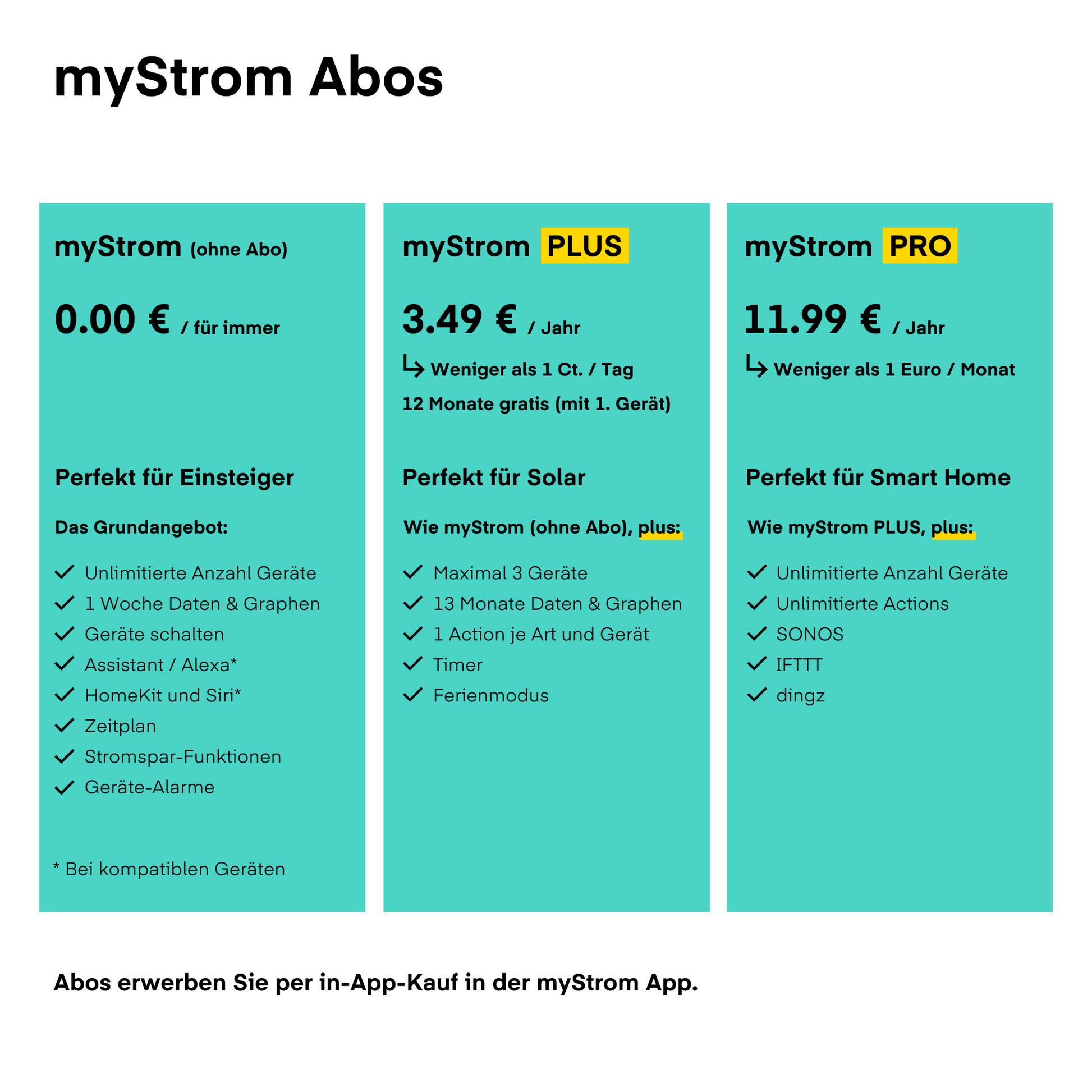 - Unterschiedlicher Leistungsumfang je MyStrom Abo - siehe Grafik