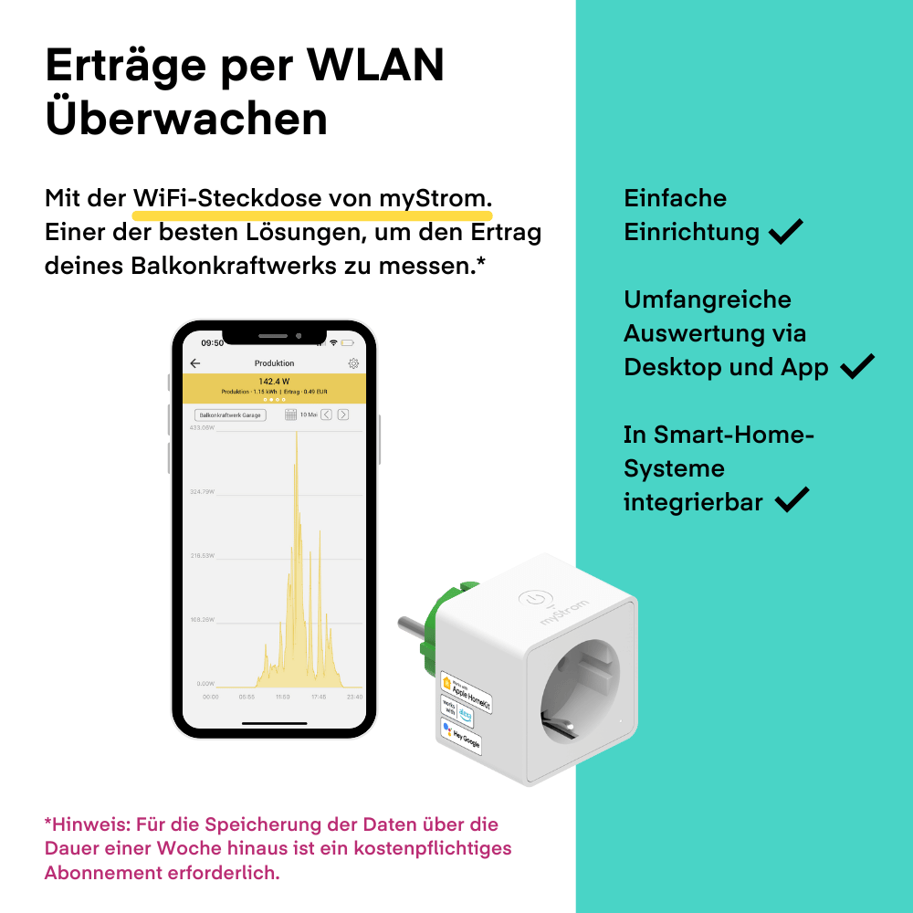 Nutze einen Energiemesser, um deine produzierte Energie und die gesparten Stromkosten nachzuverfolgen. Alle Geräte eignen sich für Schuko-Anschlusskabel.