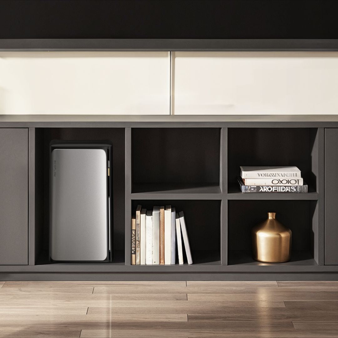 Das bedeutet, dass man die Speichereinheiten zuhause dezentral einsetzen kann. Die Einheiten kommunizieren über das WLAN-Netzwerk und müssen nicht untereinander verkabelt werden. Damit kannst du mehrere Speichereinheiten unterschiedlich zuhause platzieren, z. B. eine im Keller, eine im Wohnzimmer und eine in der Küche.